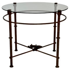 Tavolino girevole in ottone e vetro anni 70 Nello stile di Milo Baughman