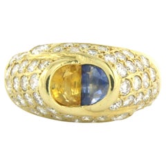 Estate RHR 18 TCW Ametista Diamante Zaffiro Anello da cocktail in oro giallo 18 carati