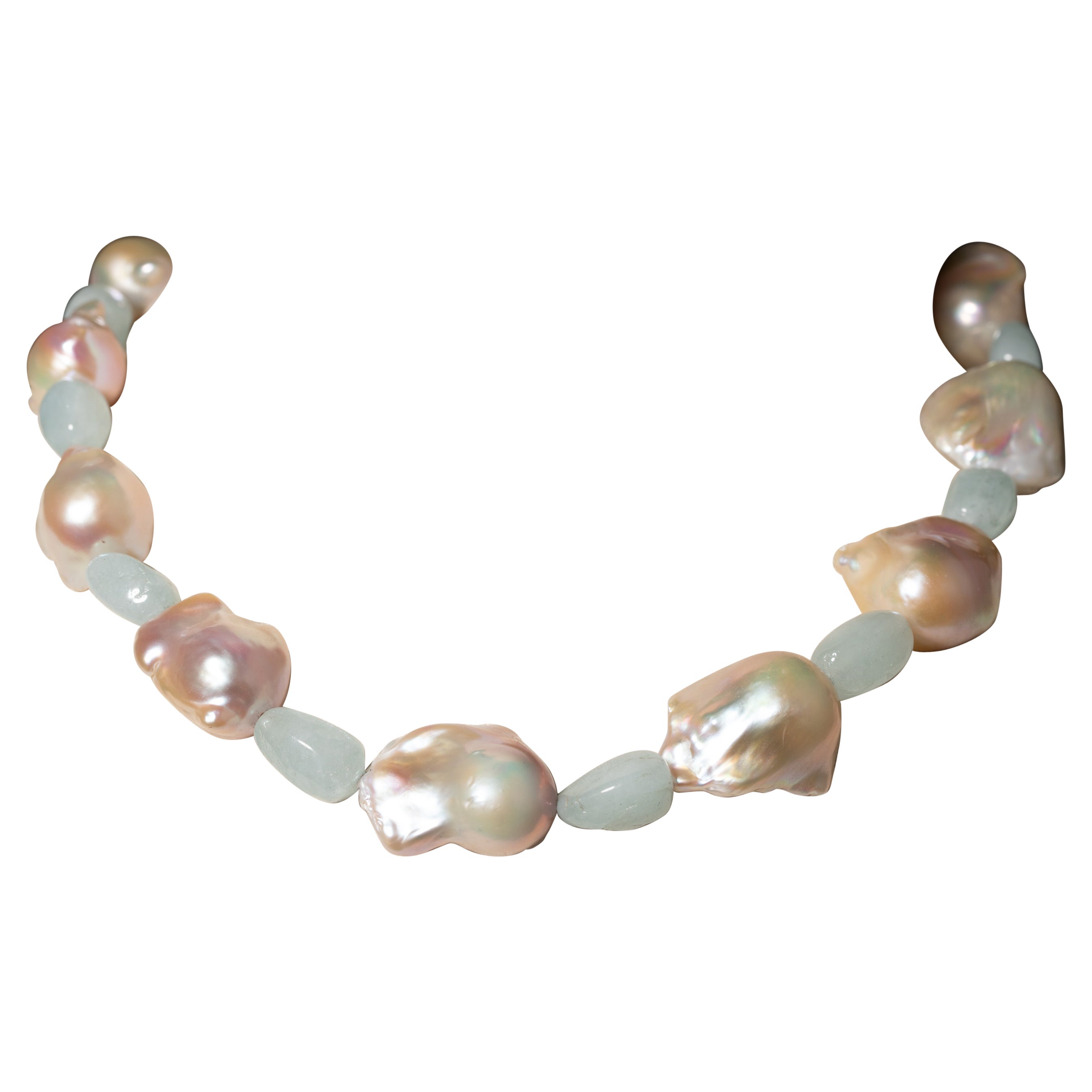 Collana con calcedonio, oro 22 carati e perle dei mari del sud