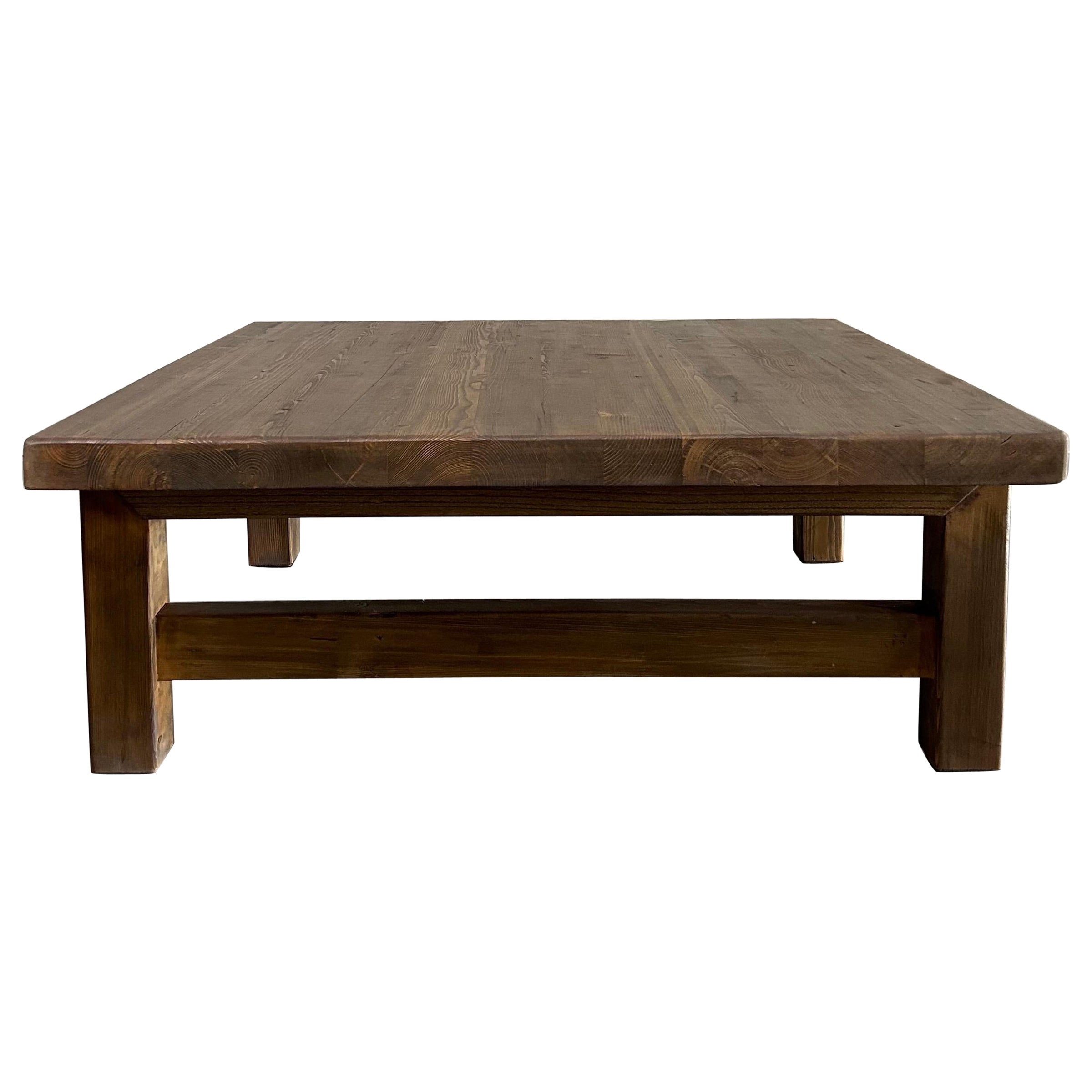 Tavolo ferroviario brutalista che mostra lo stile distintivo del famoso designer francese Pierre Chapo. Realizzato in legno massiccio dai toni dorati, il pezzo è caratterizzato da un...