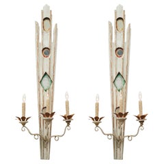 Una raffinata coppia di applique italiane degli anni '50, caratterizzata da proporzioni eleganti e da una silhouette leggera e scultorea tipica del design italiano di metà secolo. Og...