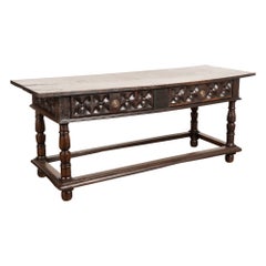 Tavolo consolle in noce spagnolo intagliato di grandi dimensioni dei primi anni del XX secolo
