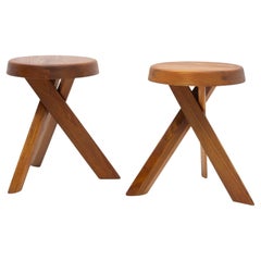 Questo straordinario sgabello a tre gambe è il modello S31, disegnato da Pierre Chapo nel 1974. Presenta una base a gambe incrociate e una seduta rotonda, entrambe realizzate in legn...
