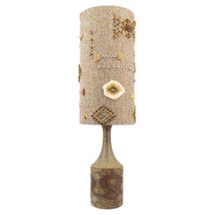 Tavolino in Studio Pottery di Tyrone e Julie Larson USA, circa anni '60 Gres smaltato lavorato a mano con base conica a piedistallo e superficie rotonda con decorazione a bande conc...