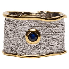 Questo anello a fascia aperta in argento 925 grezzo cattura l'essenza di un giardino selvaggio e indomito conservato nel tempo. Cinque frammenti di rubino grezzo sono incastonati nel...