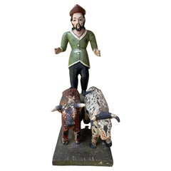 1870 Scultura di toro Folk Art artigianale realizzata a mano con materiali naturali