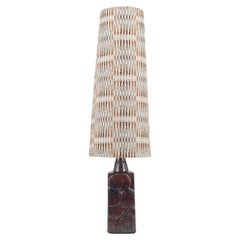 Restaurata con perizia - Lampada da terra moderna danese in teak scolpito con paralume a cono in lino