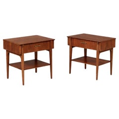 Questa coppia di comodini in stile Luigi XVI è realizzata in caldo noce e combina linee pulite e neoclassiche con un pratico contenitore per il letto. Ogni tavolo si apre sul davanti...