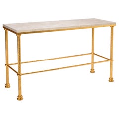 Tavolo consolle in stile Luigi XVI con base in rame e piano in travertino, Italia