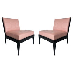 Le sedie Slipper sono disponibili in vari stili, dal classico moderno di metà secolo con gambe disadorne all'Art Deco francese degli anni '30 con uno schienale più corto. Edward Wormley ha disegnato alcune delle più iconiche sedie a pantofola moderne di metà secolo con gambe affusolate, base rotonda in legno, imbottitura a bottoni e schienale alto.