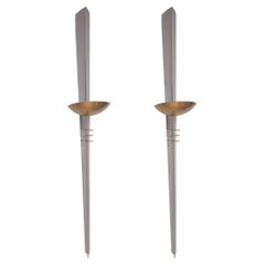 Una coppia distintiva di applique italiane degli anni '60, caratterizzate da un design audace e architettonico da metà del secolo scorso. Ogni applique presenta un supporto cilindric...