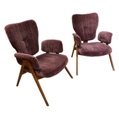 Designer brasiliano, Sedie da salotto, Wood, Velluto, Brasile, anni 50