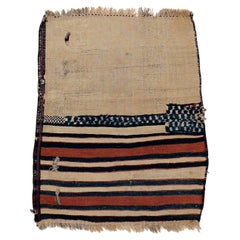 Dimensioni quadrate per accenti Soumac a tessitura piatta usurata/distrutta della metà del XIX secolo