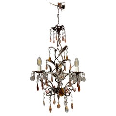 Elegante lampadario degli anni '50 con una struttura in ottone splendidamente dettagliata e ornata da prismi di cristallo di Boemia e delicate perline colorate di rosa. Il lampadario...