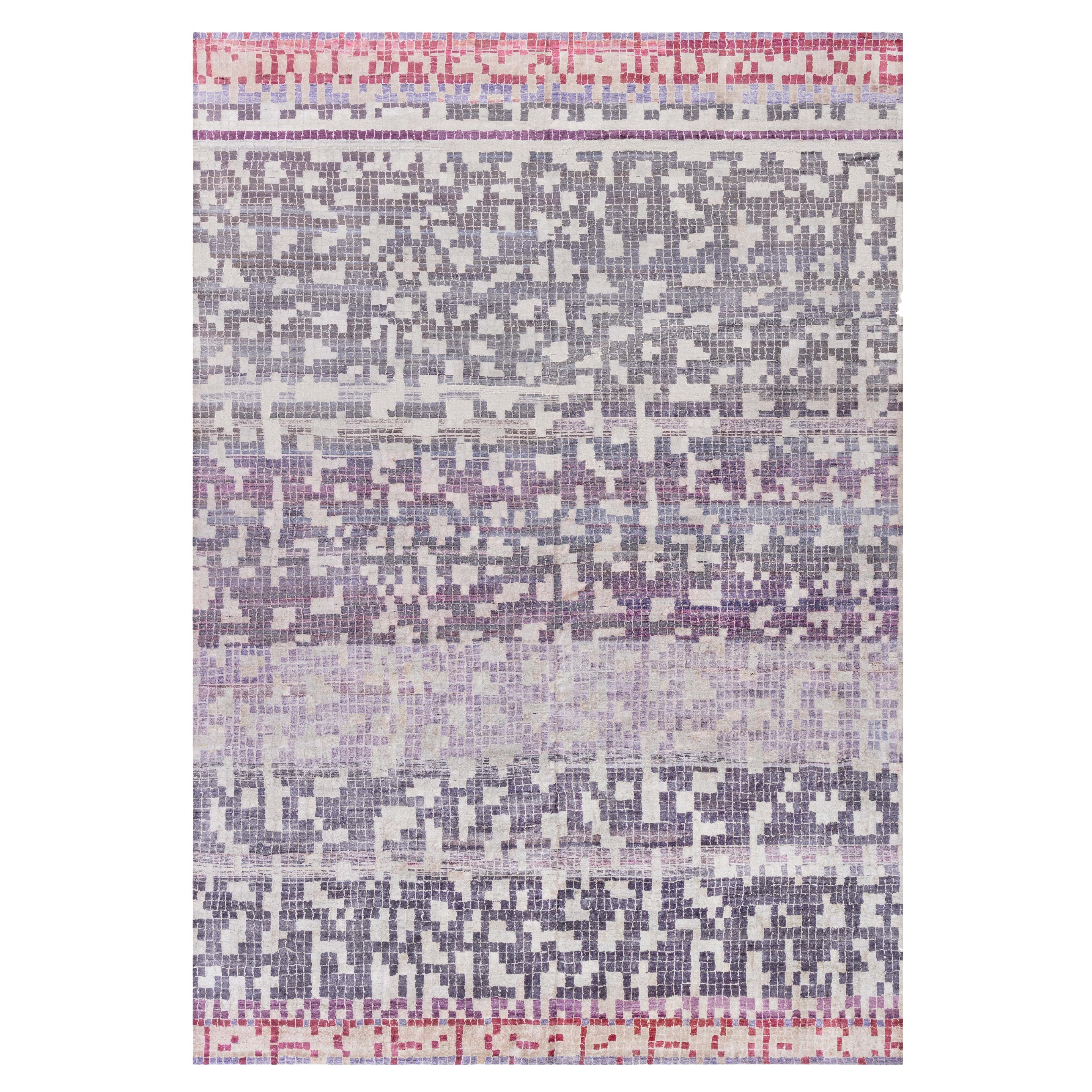 1999 Tappeto astratto in lana bianca di Edward Fields Inc.