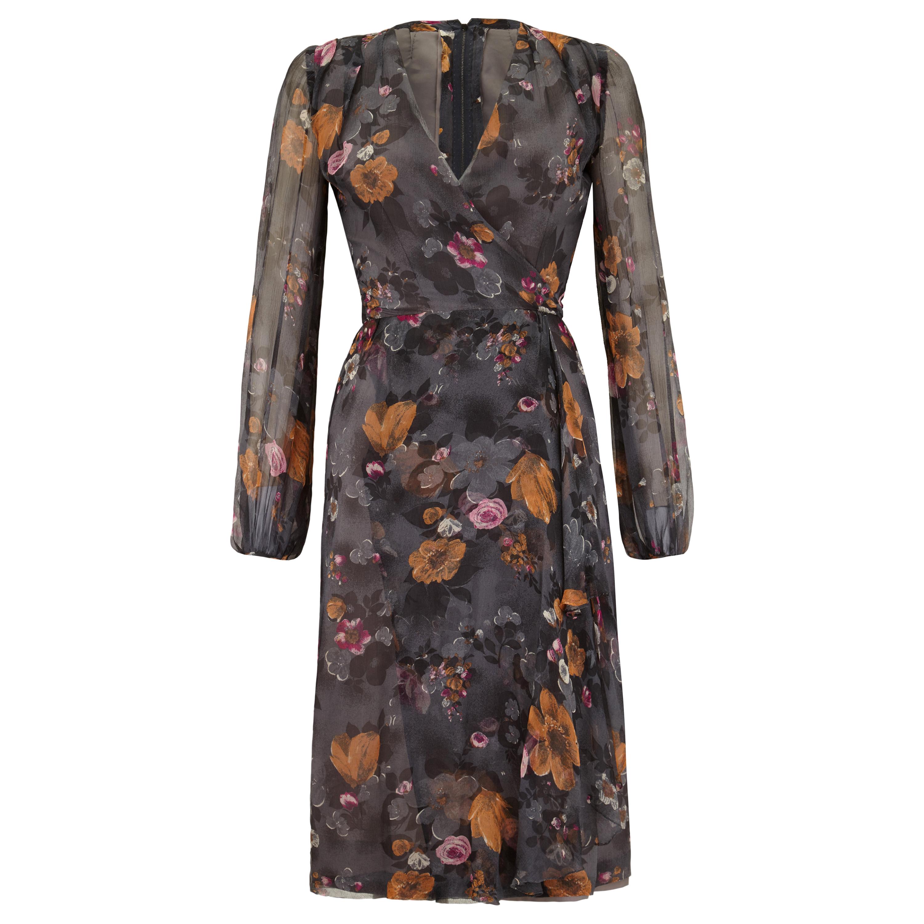 30 nero floreale in seta chiffon cotone voile UK 10 US 6