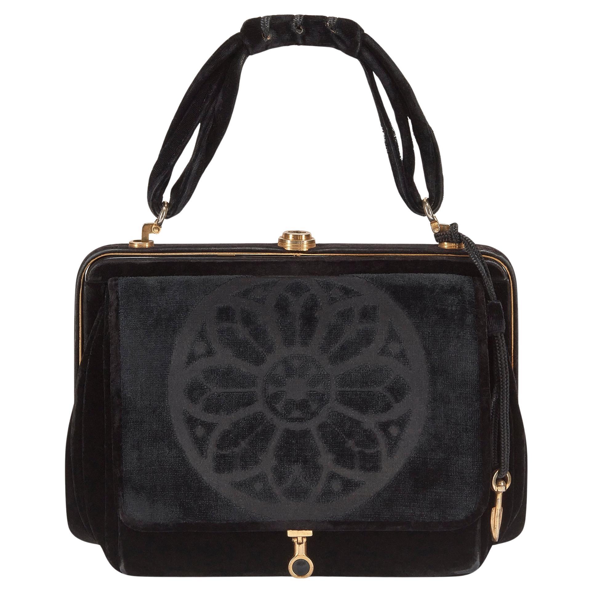 Questa splendida borsa da sera nera vintage è uno squisito esempio di design italiano degli anni Sessanta. Questo pezzo è un bel...