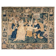 Splendido arazzo Aubusson antico di grandi dimensioni del XVII secolo, scena di battaglia storica