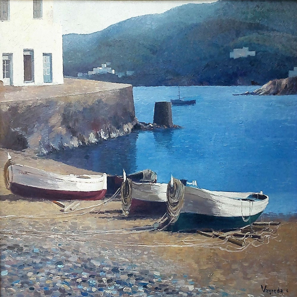 Cadaques pittura ad olio paesaggio marino spagnolo arte mediterranea