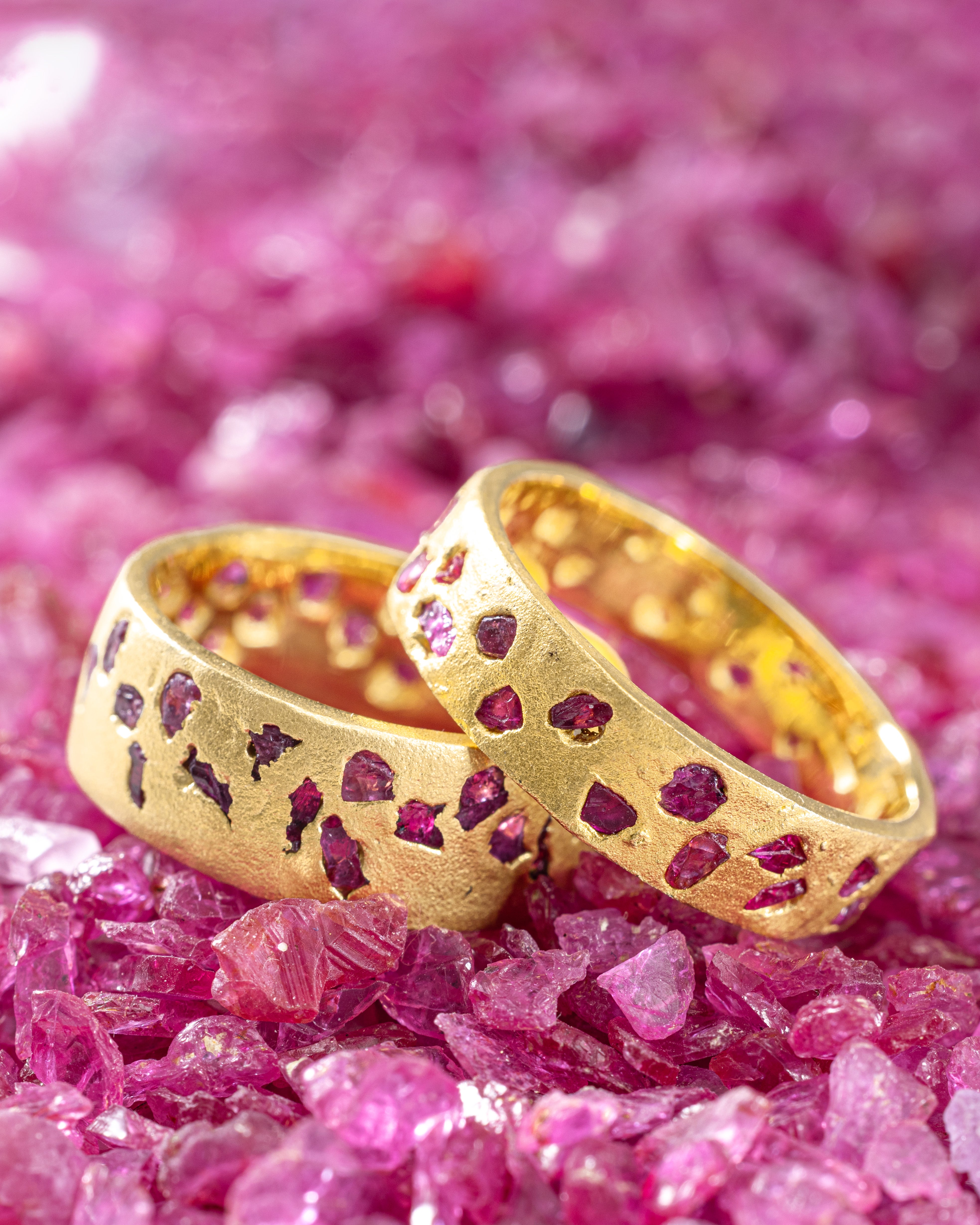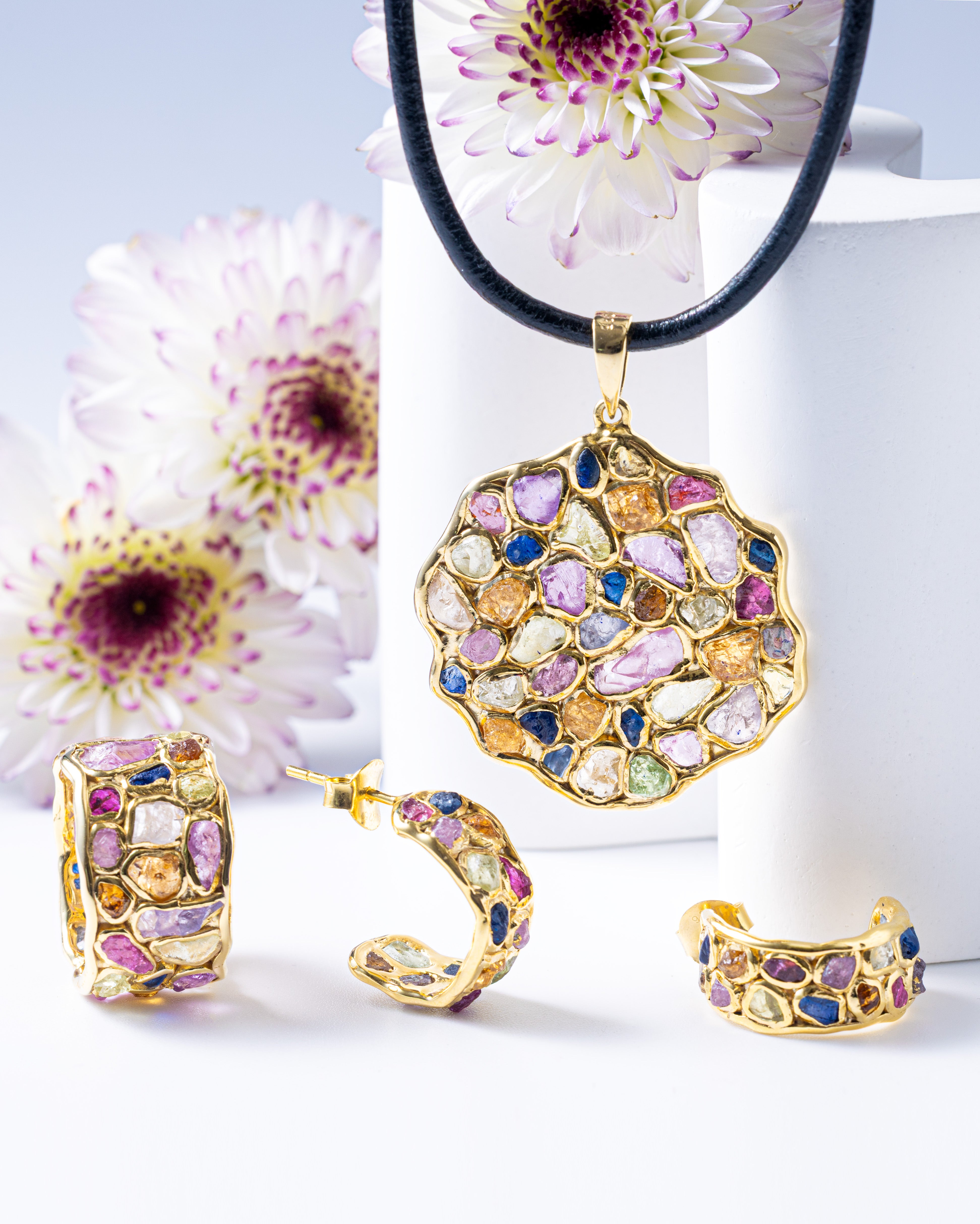 We work with raw gemstones because they show the stone exactly as it came from the earth — untouched, with all its natural edges, fractures, and textures. In commercial jewelry, most stones are polished and treated until they all look the same. We think that process removes their character. A raw stone may not be perfect, but it’s honest — it still carries its natural shape, color shifts, and mineral details formed over millions of year