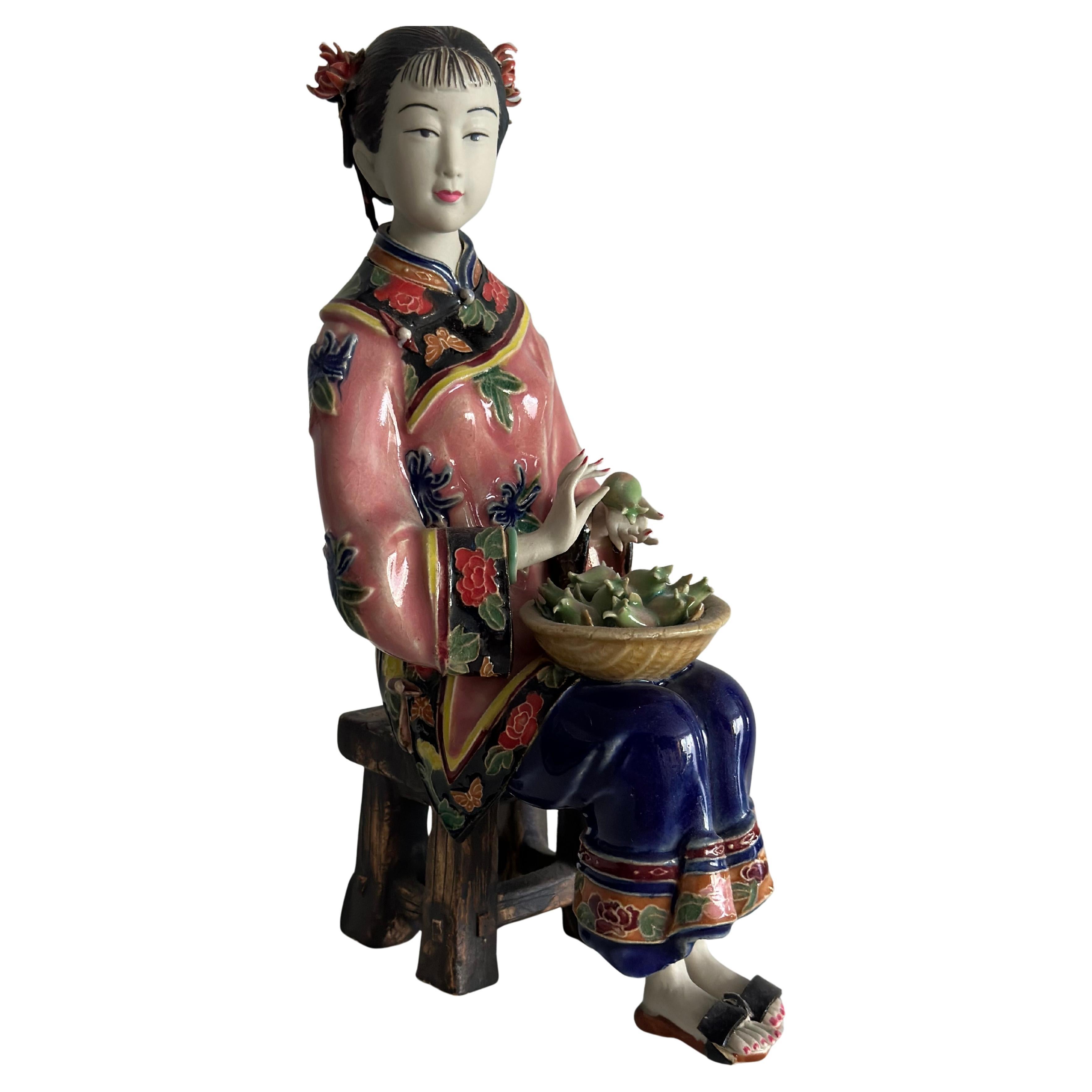 Una favolosa statuetta asiatica vintage degli anni '20. Un disegno chic in Blanc de Chine di una bella donna. Stampigliato sul fondo.