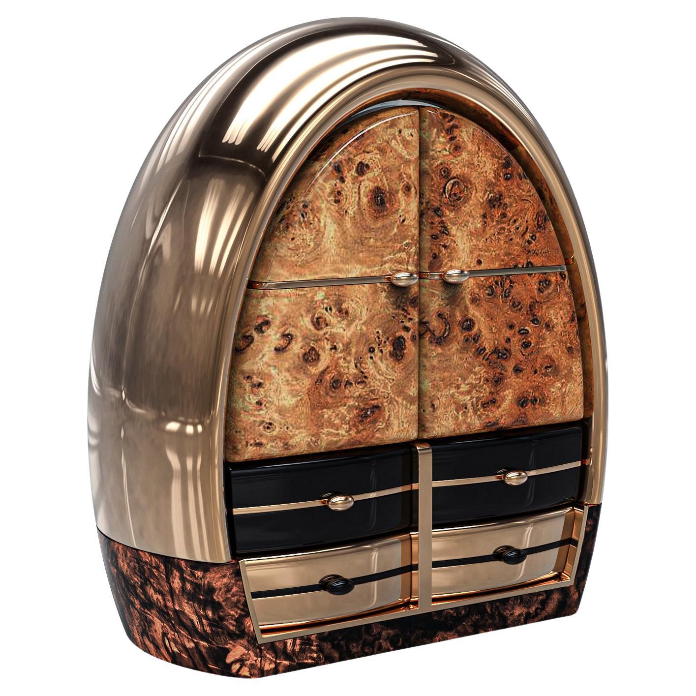 Armadio con porta a specchio in radica francese intagliata e satinata molto raffinata