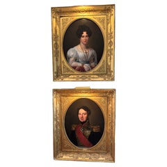 Un'affascinante e suggestiva coppia di ritratti in miniatura degli inizi del XIX secolo, uno dei q...