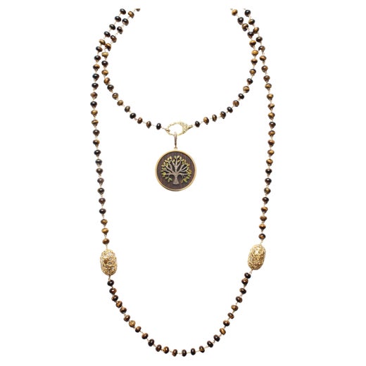 Clarissa Bronfman Bracciale di Malachite Ebano Oro Occhio di Tigre Malocchio con perline