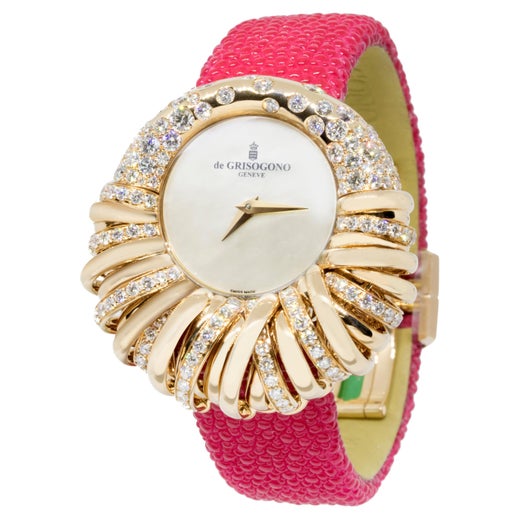 Gli orecchini di de GRISOGONO, i bracciali , gli anelli e altri audaci pezzi impreziositi da diamanti neri hanno catturato la fantasia di acquirenti benestanti negli anni '90, portando il marchio a una rapida ascesa. È entrata nel mondo degli orologi di lusso nel 2000 con l'Instrumento Uno da uomo, che ha portato allo sviluppo del Crazy Skull nel 2015. Il giocoso orologio su ordinazione può essere dotato di gemme fino a 45 carati.