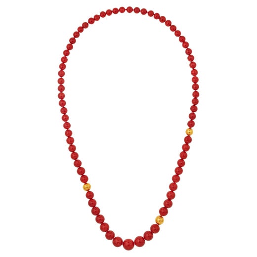 GIA Collana in corallo con perle rotonde e accenti in oro giallo 18 carati