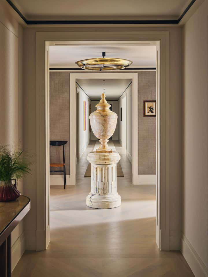 Through thoughtful curation of vintage and contemporary details, Elicyon has crafted an inviting four-bedroom apartment with a natural flow that radiates warmth. Spanning 4,209 sq. ft., the home is defined by soft curves and rounded silhouettes, with subtle motifs identifiable in the textured wallpaper, bespoke cabinetry, and rounded furniture seen throughout.