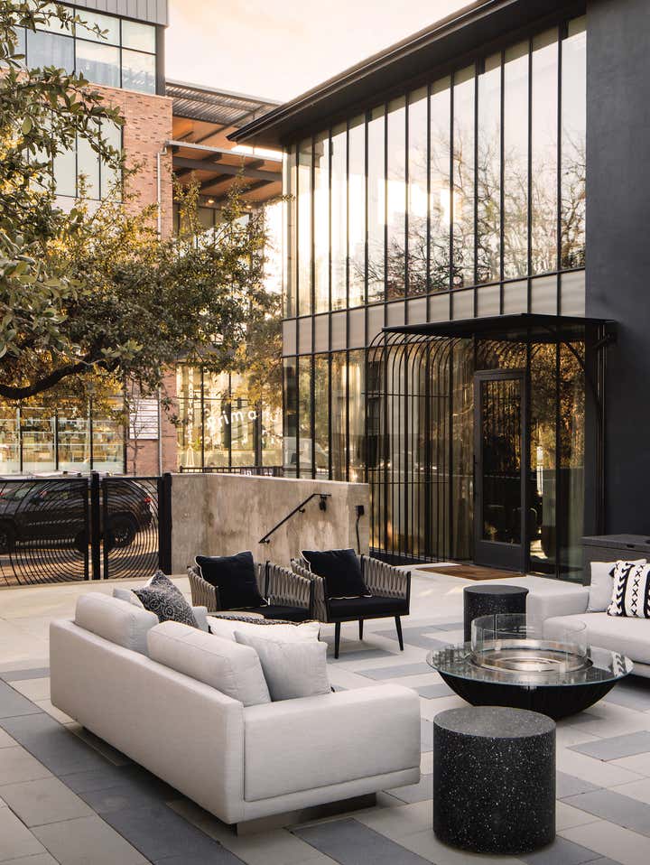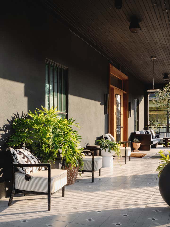 A key feature of the design is the addition of a glazed exterior corner, which emulates the screened porch that once graced the building. The glazing creates a seamless connection between the interior and exterior spaces.