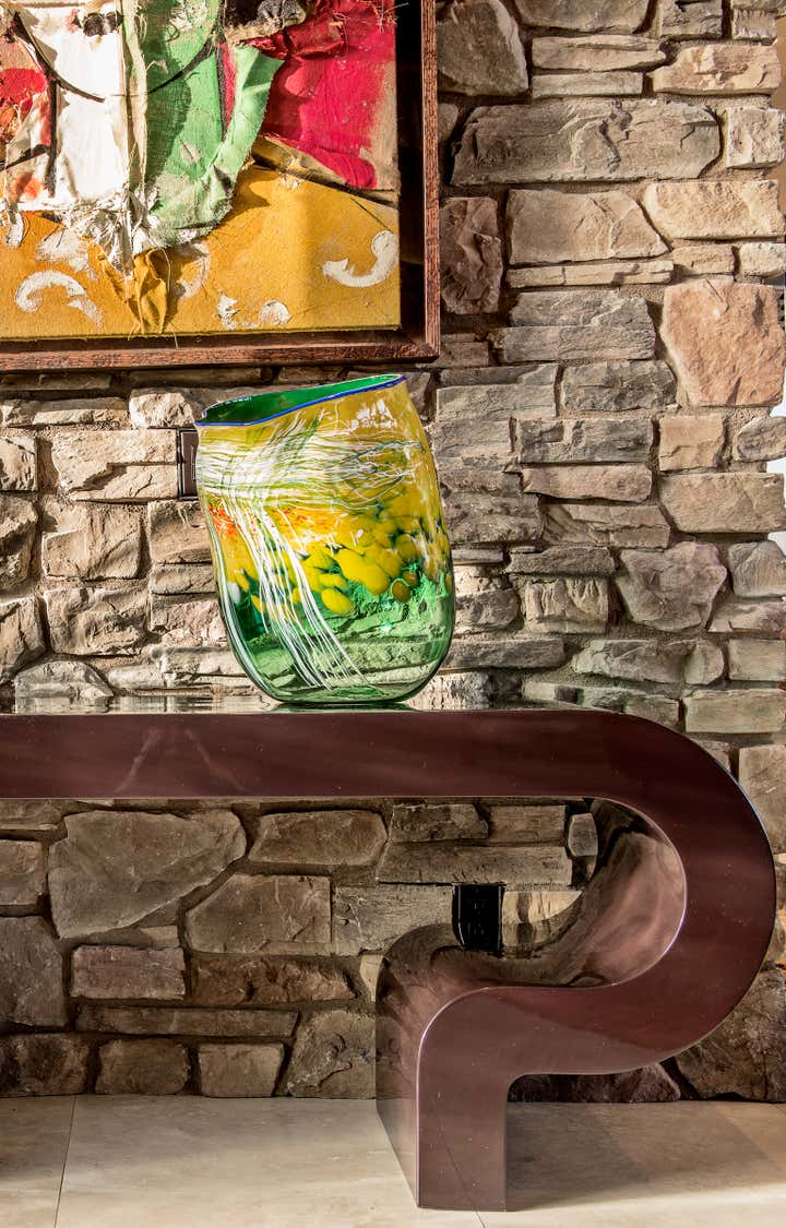 My client loves colorful accents and as you can see we introduced a lot of it in the furnishings and art collection. A very neutral backdrop both exterior and interior made the color accents quite perfect. The home was slightly renovated and has a mid century modern feel.