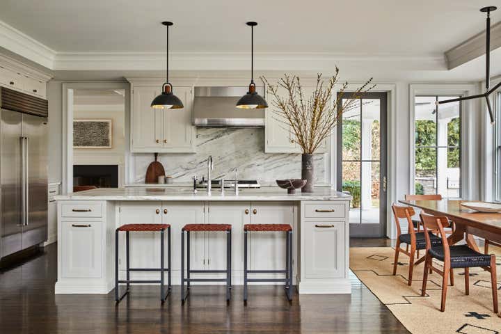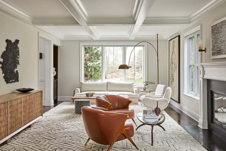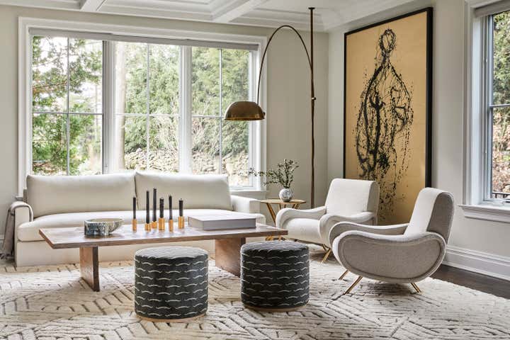 This eclectic Scarsdale home features thoughtful curation of beautiful art, furniture, and lighting.