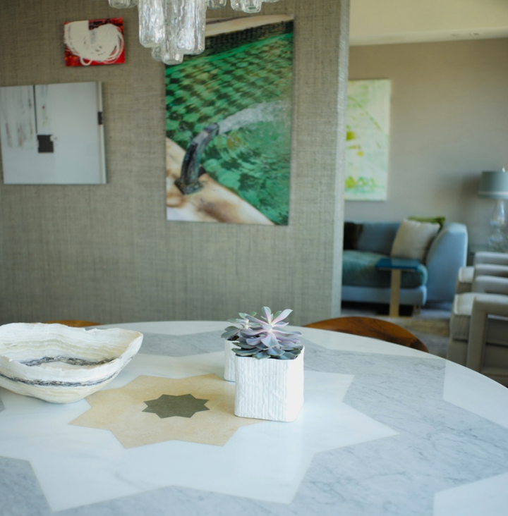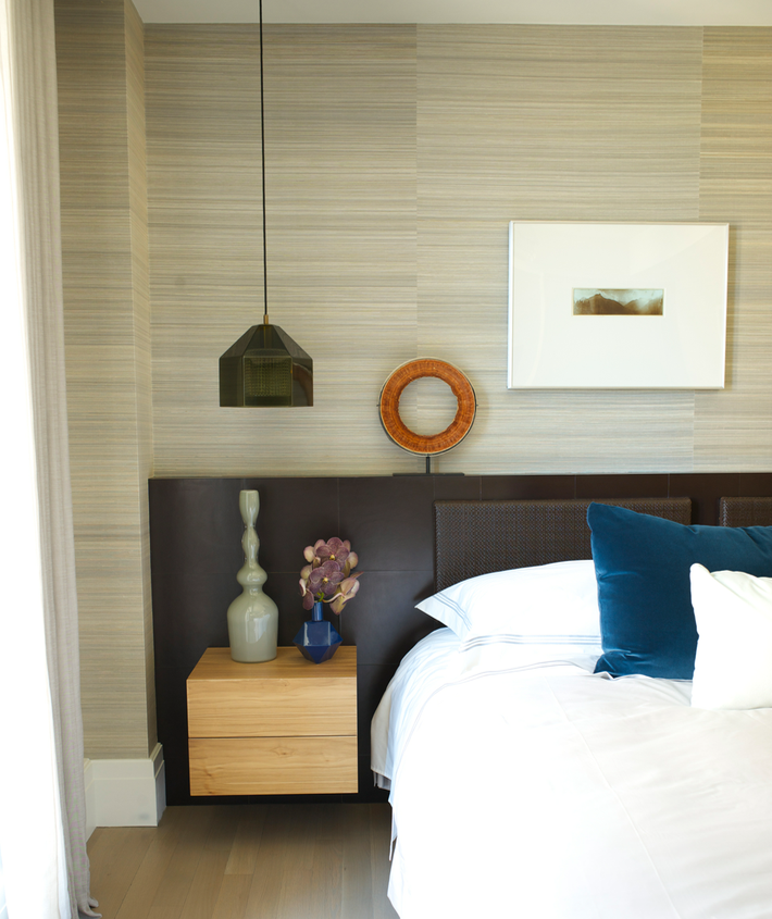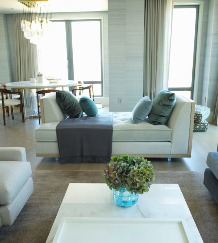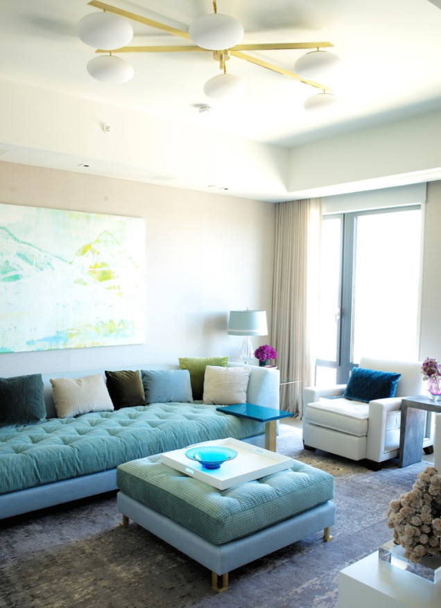The clients were interested in creating a family friendly modern home that feels cozy and inviting. We used extra plush menswear inspired fabrics to layer in a warm touch. The colors are a bit saturated while being airy. All of the upholstery is bespoke; designed and proportioned to the space. The sculptural lighting is mainly a mix of vintage Italian with a time-warn patina.