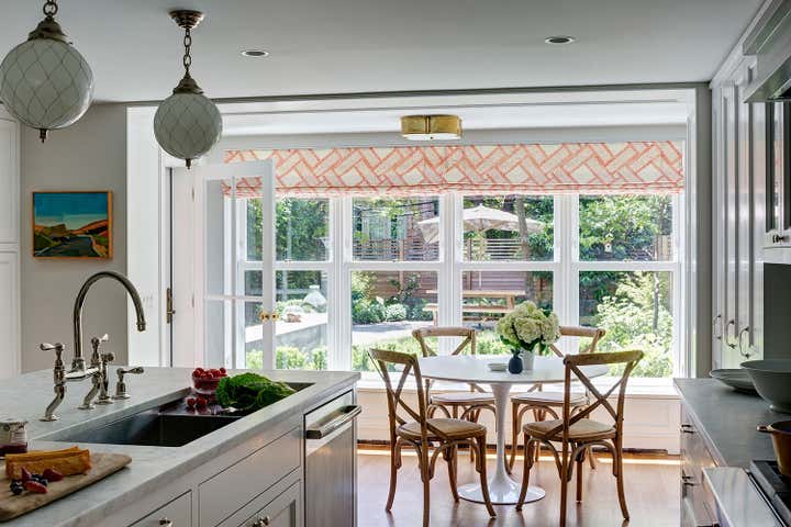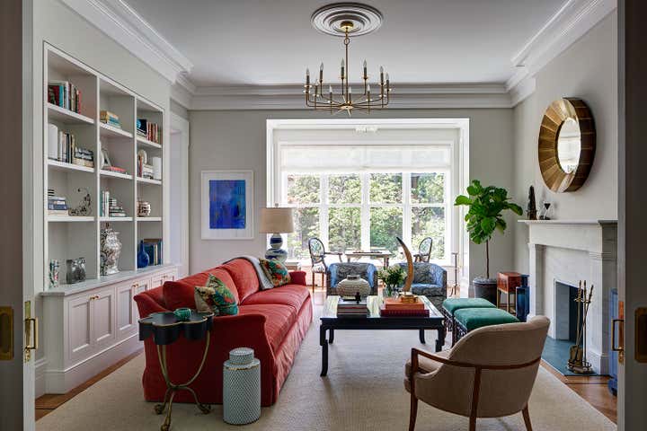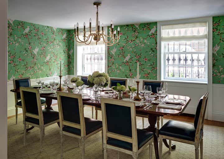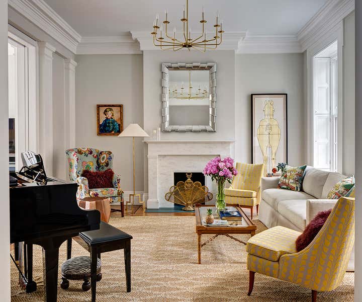 "Elegant but practical materials accommodate the family of five, and unique colors and patterns provide a luxurious atmosphere, while inviting residents and guests to relax and enjoy this classic Brooklyn brownstone."