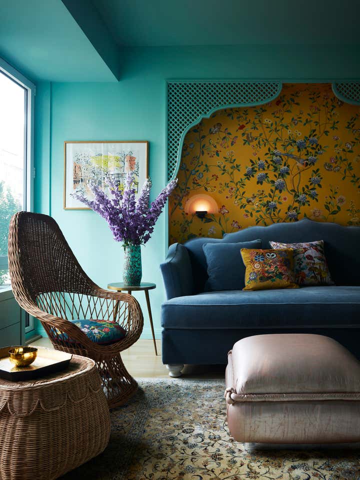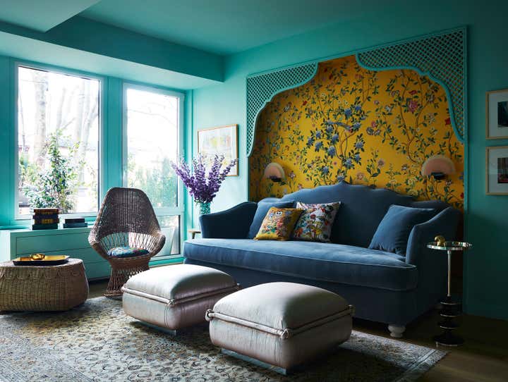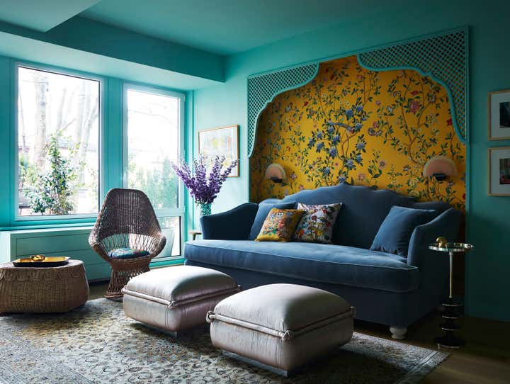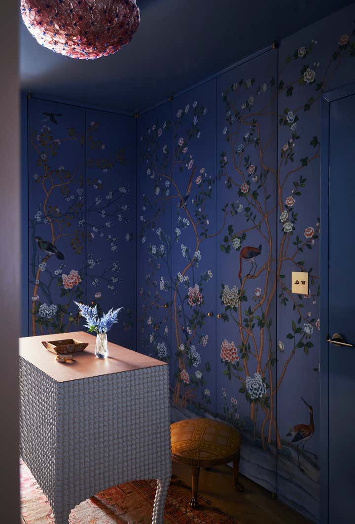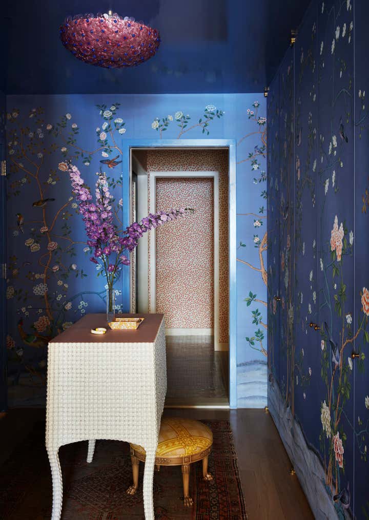 The Brooklyn Studio transformed this newly renovated 1,580 sq. ft. pre-war Brooklyn Heights Love Lane Mews condominium into a luxurious haven filled with joy for a bon vivant who envisioned ornate exuberance, floral motifs and a warm pastel color palette for her home.