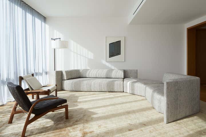 This apartment explores the boundary between a residence and a gallery. The pure architecture of Renzo Piano-designed 565 Broom Street presented a stage for Magdalena Keck’s signature warm minimalism that quietly stimulates the senses while being functional and approachable.
