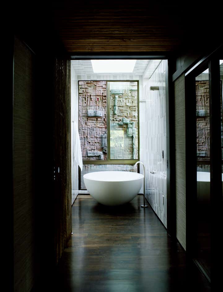 Architectural renovation and interior design for a Buff Hensman residence originally designed in 1961. The historic building was restored back to its original ground plan and window openings. The structure was opened up much like open-air pavilions in South America. Ceramicist Stan Bitters was enlisted to create two water walls. An expansive outdoor living area with a kitchen, bathroom structure, billiard room and reconfigured pool was created to encourage indoor outdoor living. The entire house can also be controlled remotely and is energy efficient. The interior is warm and cozy, and includes a collection of favorite furnishings from South American design and European Modernism.