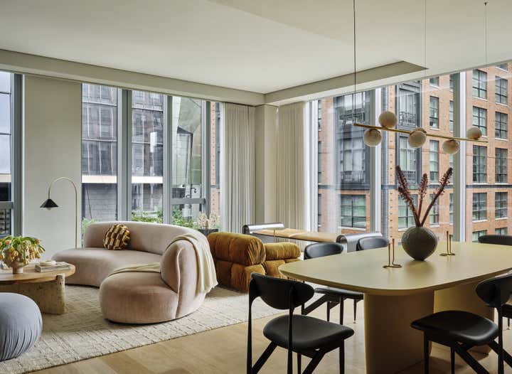 Perched above the High Line is a cozy, chic pied-à-terre that provides solace despite the bustle below. With glittering views of Hudson Yards, Lucy and the team embraced the floor-to-ceiling windows, layered color and pattern to create depth, and selected custom décor to reflect the sophisticated aesthetic of our clients.