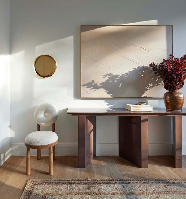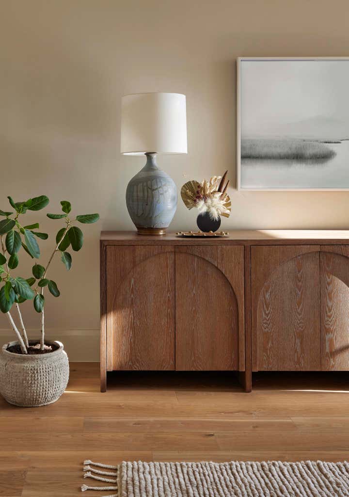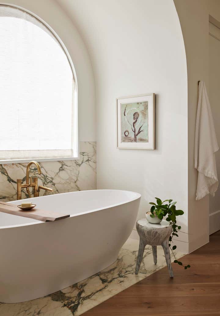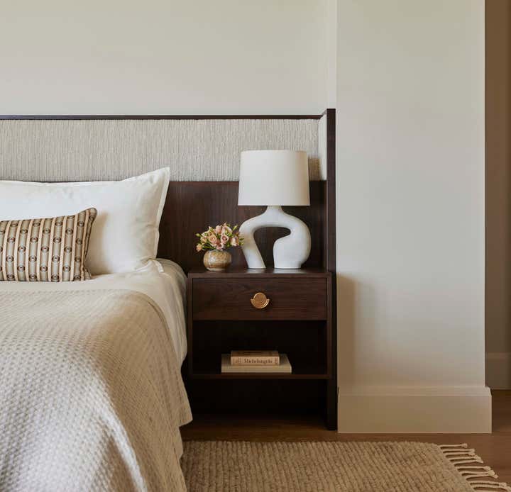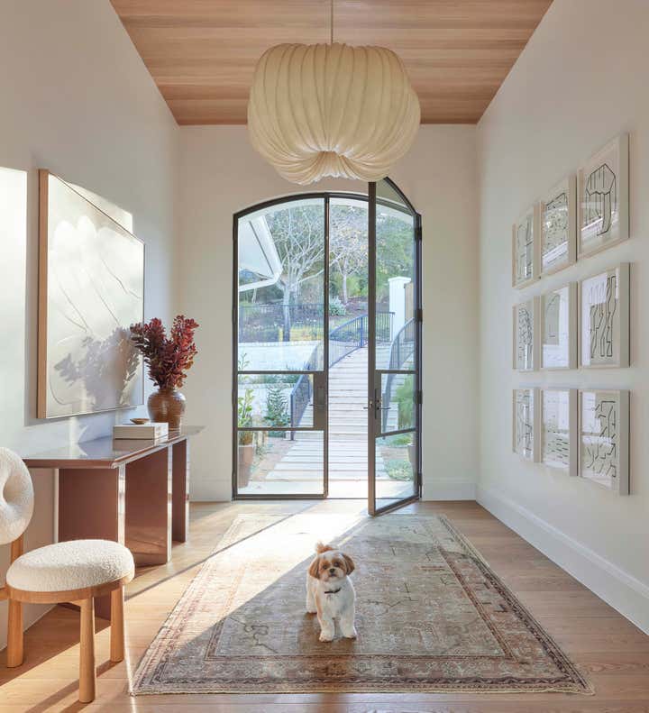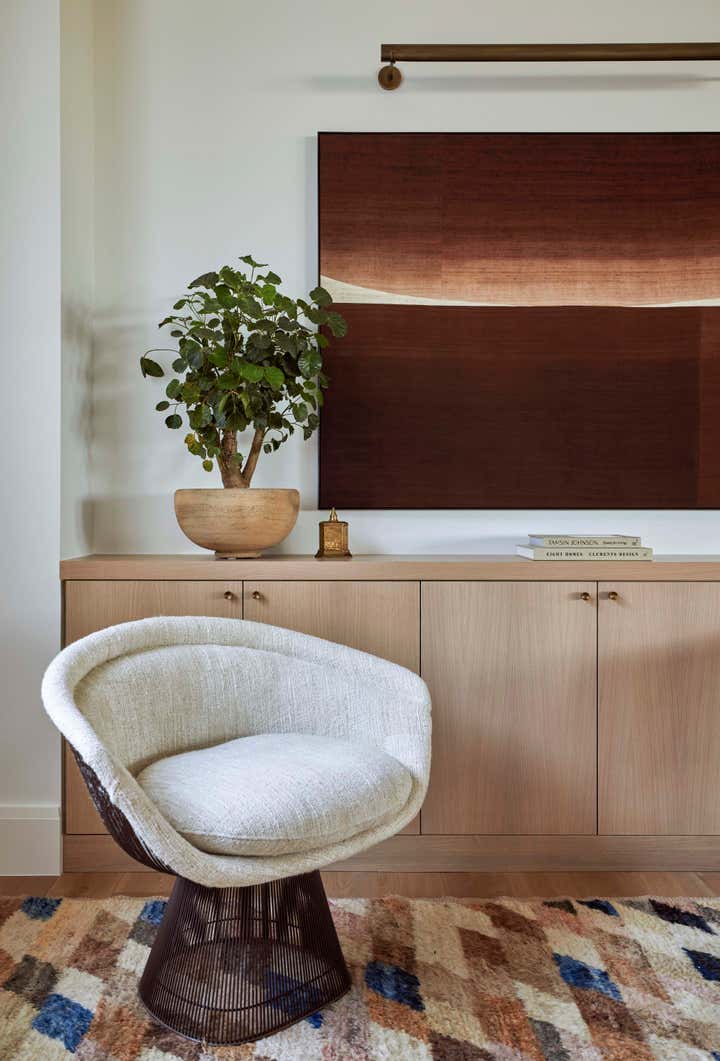 Transforming the rustic bones of this Austin, Texas project into a calming, California-inspired space was a feat that required an extensive rework of materials and textures. While much of the original layout was maintained, Ekeland s team sought to replace the existing dark wood and heavy beams with lighter walls, natural fibers and warm metals. The results offered a bright home with a curvaceous flow and calming aesthetic.