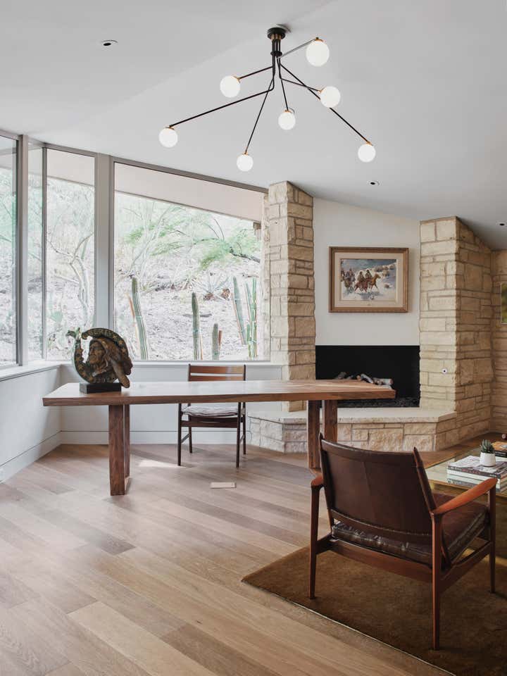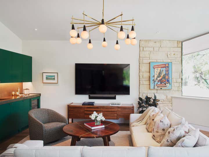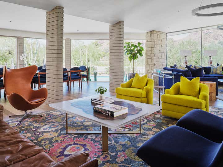Family home located in sunny Phoenix using a grouping of modern furnishings and vibrant color.