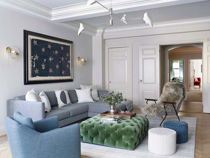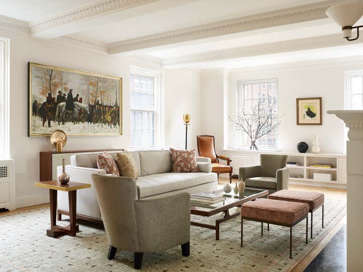 Built in 1930 in New York’s upper east side, this 3500 square foot apartment is in a beautiful Art Deco building designed by the renowned architect, Rosario Candela. Crenelations, buttresses and spires decorate the facade of the structure. The apartments within are designed with generous proportions , pristine moldings, fireplaces and in some instances staircases that make the apartments feel like multi story homes within a building. This combination of elegant but subdued Art Deco features and domestically scaled spaces was our inspiration for the interior design.