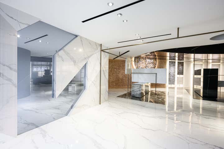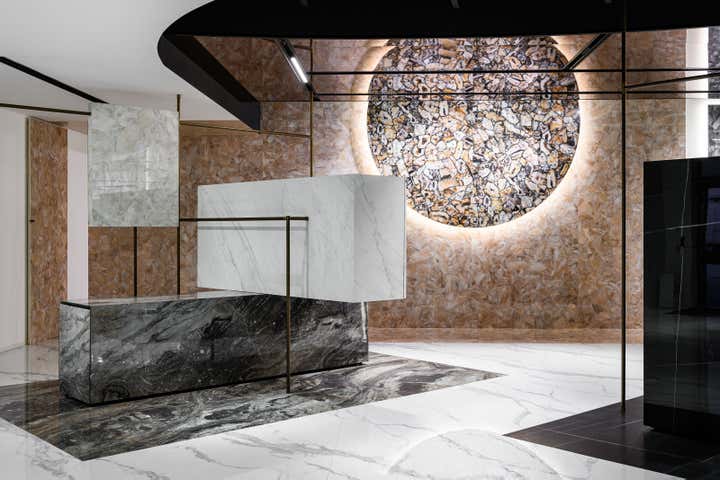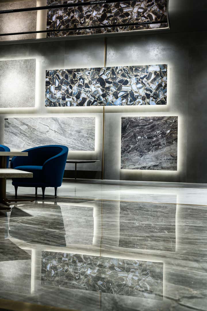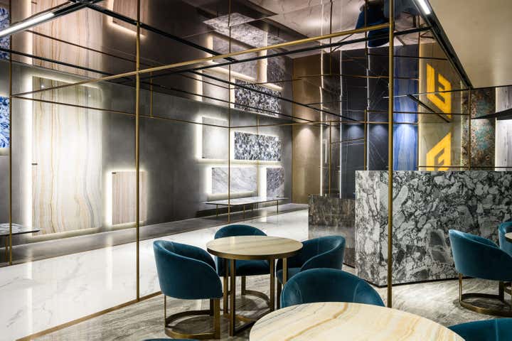 The FAB Fiandre Architectural Bureau - the brand’s most representative space, located at the Castellarano headquarters - was devised by Iosa Ghini Associati. It offers new take on the concept of the showroom, aiming to accommodate a varied audience of architects, designers, influencers, customers, key accounts, industry professionals and lovers of the world of design and image. The new showroom allows Fiandre to offer visitors a welcoming space which encapsulates the brand identity and showcases a comprehensive range of products and applications.
