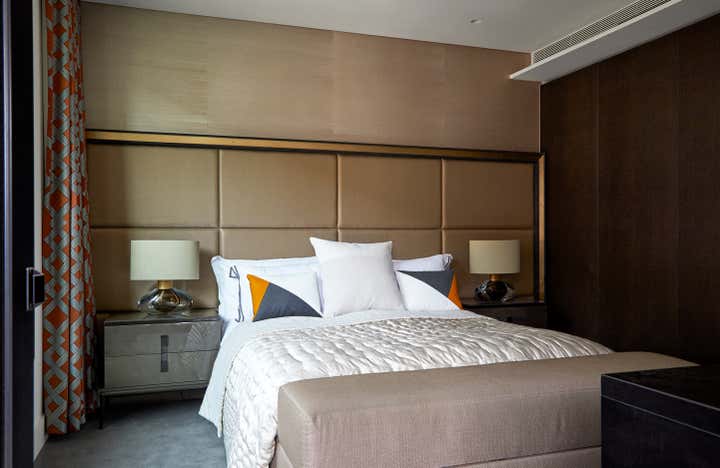 Brief and Scope: To furnish and decorate a newly built 3 bedroom flat in Fitzrovia in the style suggested by the inspirational images from the client. Solid, sophisticated furnishings will abide throughout, giving a sense of highly comfortable, luxury living. The design aesthetic will stem from the Fendi Casa collections, employing a neutral palette and refined materials, with strong accented tones and layered dressing, and selected artworks. The apartment contains a designer kitchen with integrated appliances, a spacious living area and modern bathroom. This beautiful apartment also benefits from comfort cooling, an integrated sound system, timber flooring and floor-to-ceiling windows. The development also offers a wide range of on-site amenities, including a swimming pool, gymnasium, a private garden, 24-hour concierge, a wine cellar and a residents lounge overlooking the tranquil private garden.