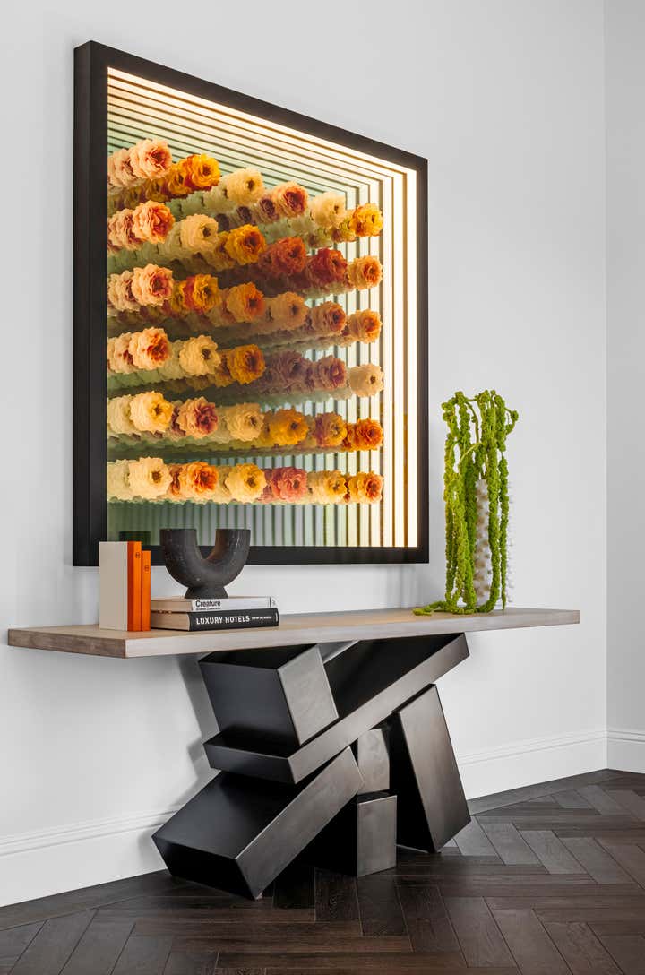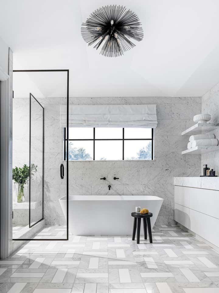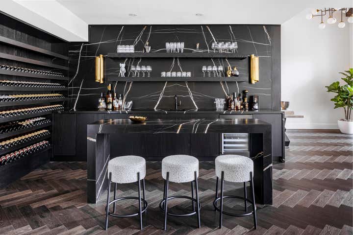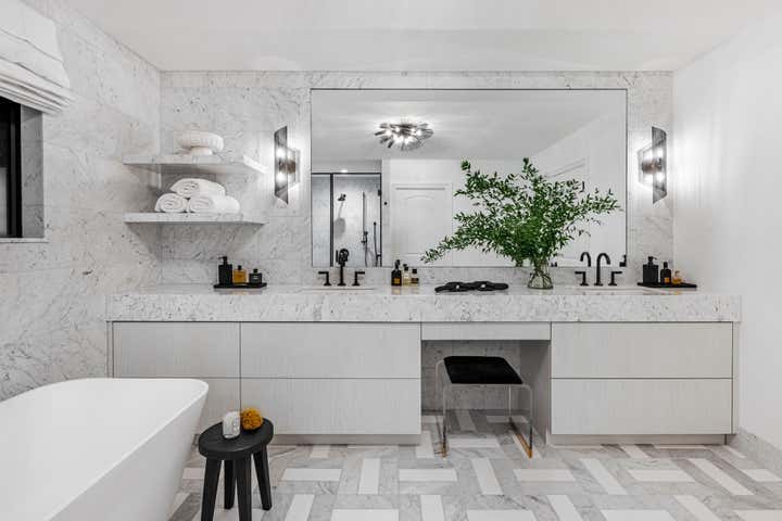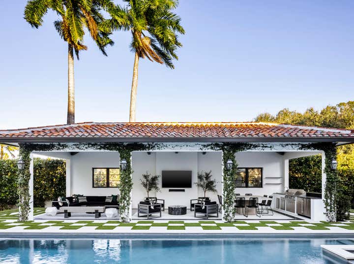 “Situated on a rare, large waterfront lot in Fort Lauderdale, Florida, this outdated home was transformed into a modern retreat for a young family of five,” designer Jennifer Wagner Schmidt tells us. “The homeowners took their time in renovating the property over the course of 2 years and enlisted our help for the interior design.” Her firm, JWS Interiors, was tasked with designing and updating most of the 5,000 square foot home. The family’s top priorities were the creation of a great entertaining area and bar off the living room, renovating the primary bathroom and bedroom, and adding a new pool and cabana outdoors.