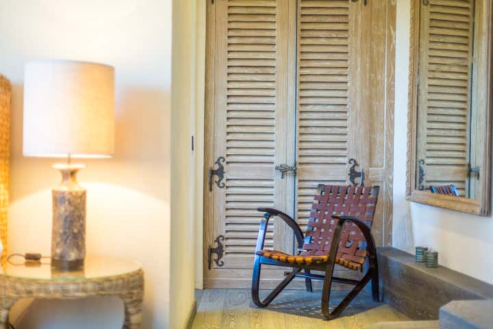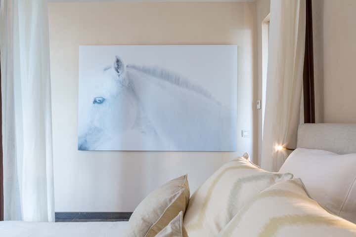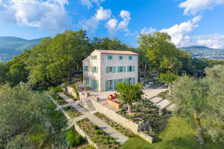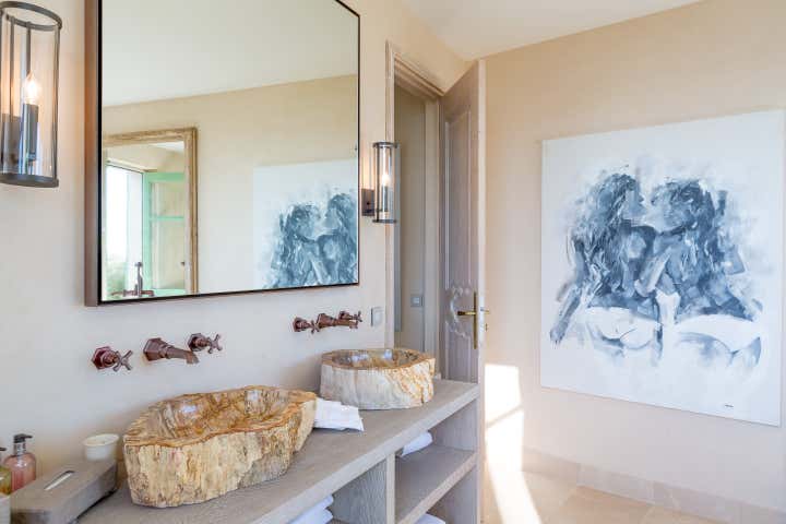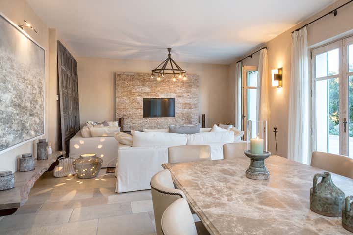This property was given an eclectic modern-rustic theme in a restrained colour palette. Contemporary Art sourced from Local French Riviera galleries were mixed with Contemporary and antique 20th Century furniture from Eric Schmitt, Jacques Adnet, Alexandre Loge amongst others.
