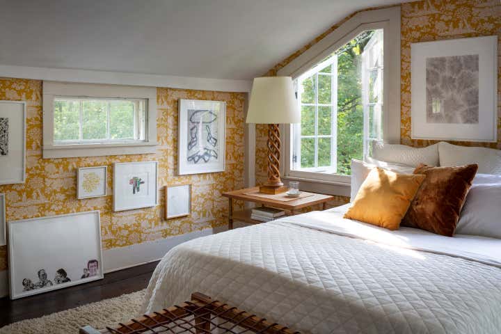 And as an avid entertainer, the home’s four bedrooms provide for a steady stream of eclectic guests, while a well-equipped kitchen and sprawling dining room that seats ten stands at the ready for dinners near the home’s original fireplace. With a sense of joy and abundance, Glenn sees his house as a place to be shared with friends and family where fun, playful, and considerate guests
