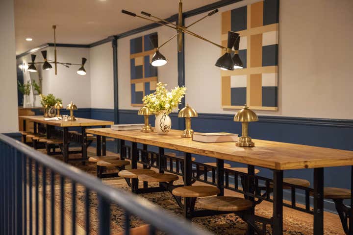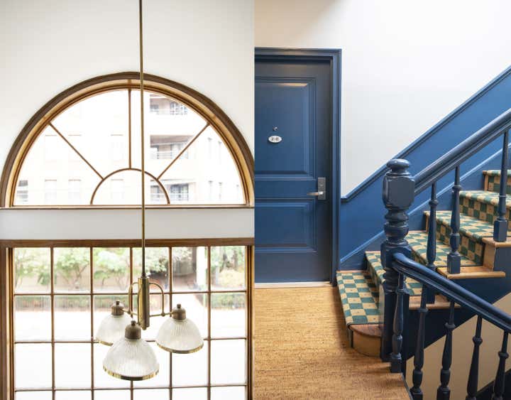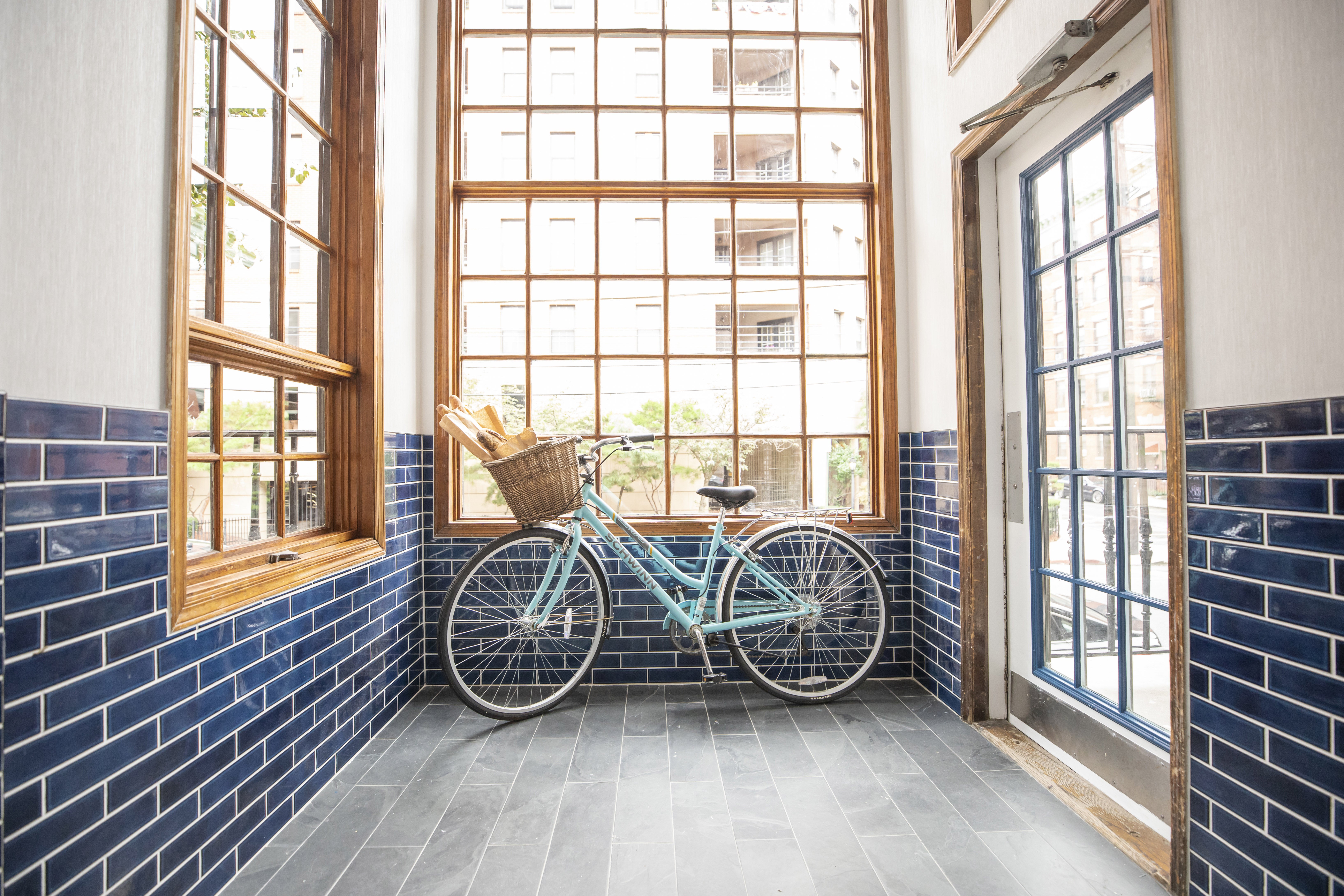 In the 1960s and ‘70s, a developer in Hoboken, New Jersey converted 14 turn-of-the-century buildings into apartments. Realizing he needed to update his holdings by incorporating design and amenities, he approached us. As a way to honor the setting, we paired turn-of-the-century materials with current components and focused our design efforts on entryways, corridors, amenity spaces, staircases, kitchens, and bathrooms. In the amenity spaces, refinished haberdashery cabinetry from the 1930s, chandeliers from the ‘40s, and rugs from the ‘60s mingle with new furniture and contemporary art. The result is a nifty—yet livable—blend.