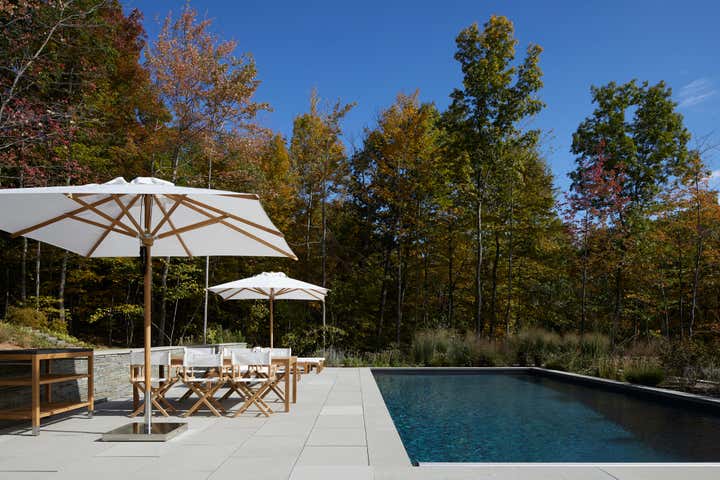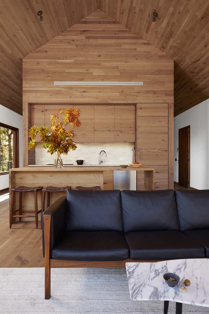 This Catskills vacation home designed for a client who leads design at a global technology firm is set between woods and meadows. Both the indoor and outdoor spaces draw upon the Japanese and American heritage of the clients. “The design is equally driven by my fascination with the abundant beauty and balance found in nature, especially given the setting and purpose of the house, as well as the passion I have to dive deep, take apart and put back together the ethos of the inhabitants,” says Keck.
